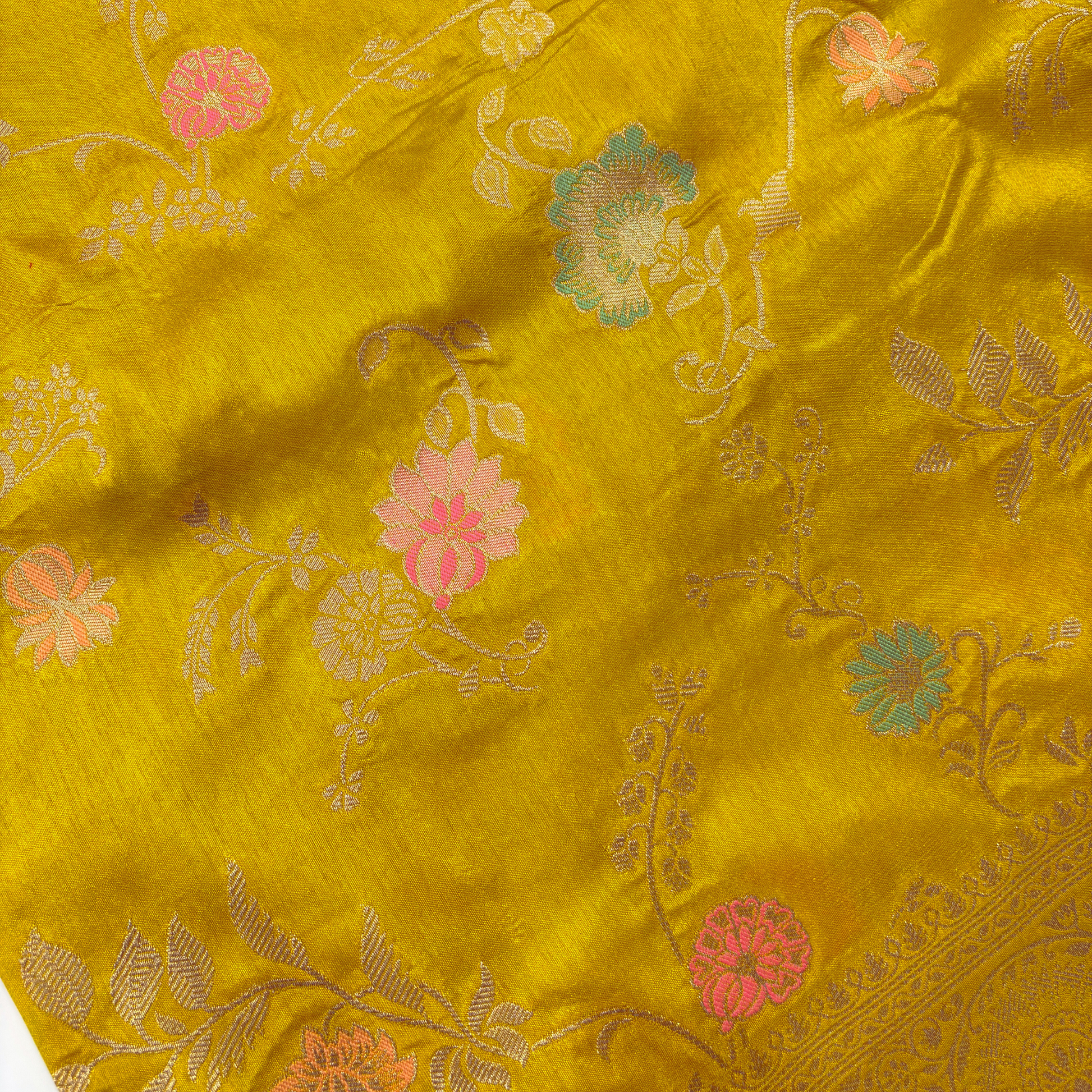- Pattern: Meenakari Zari Weaving with Floral Design